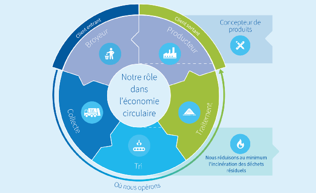 Notre modèle économique s'articule autour de la maximisation du recyclage. Nous visons à augmenter la quantité et la qualité des matériaux recyclés. Ce faisant, nous évitons d'importantes émissions de CO2 tout au long de la chaîne de valeur.