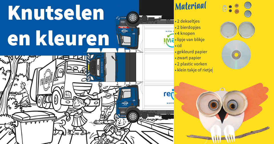 Ben je een beetje creatief? We dagen je uit om zelf een uil van afval te knutselen. Houd je meer van kleuren of knippen en plakken? Ga dan aan de slag met onze kleurplaten of knutsel een echte vuilniswagen of een vrachtwagen met een grote container erop.