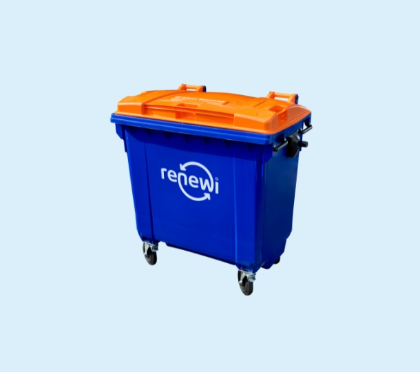 Renewi biedt je rolcontainers van 240 liter tot en met 2500 liter, geschikt voor verschillende afvalstromen.